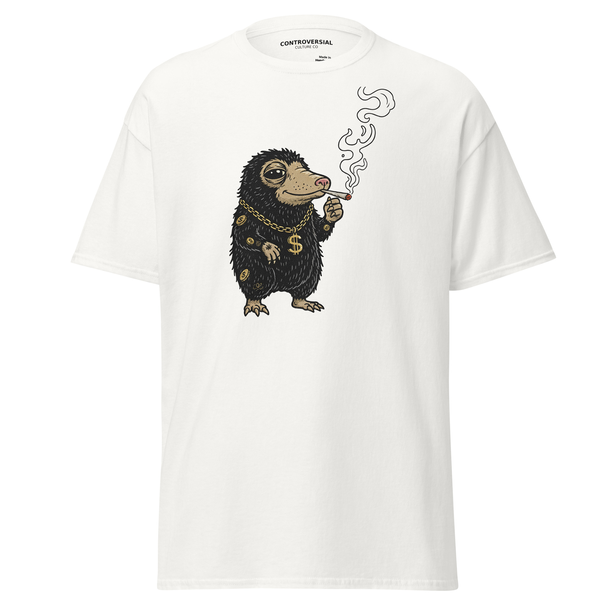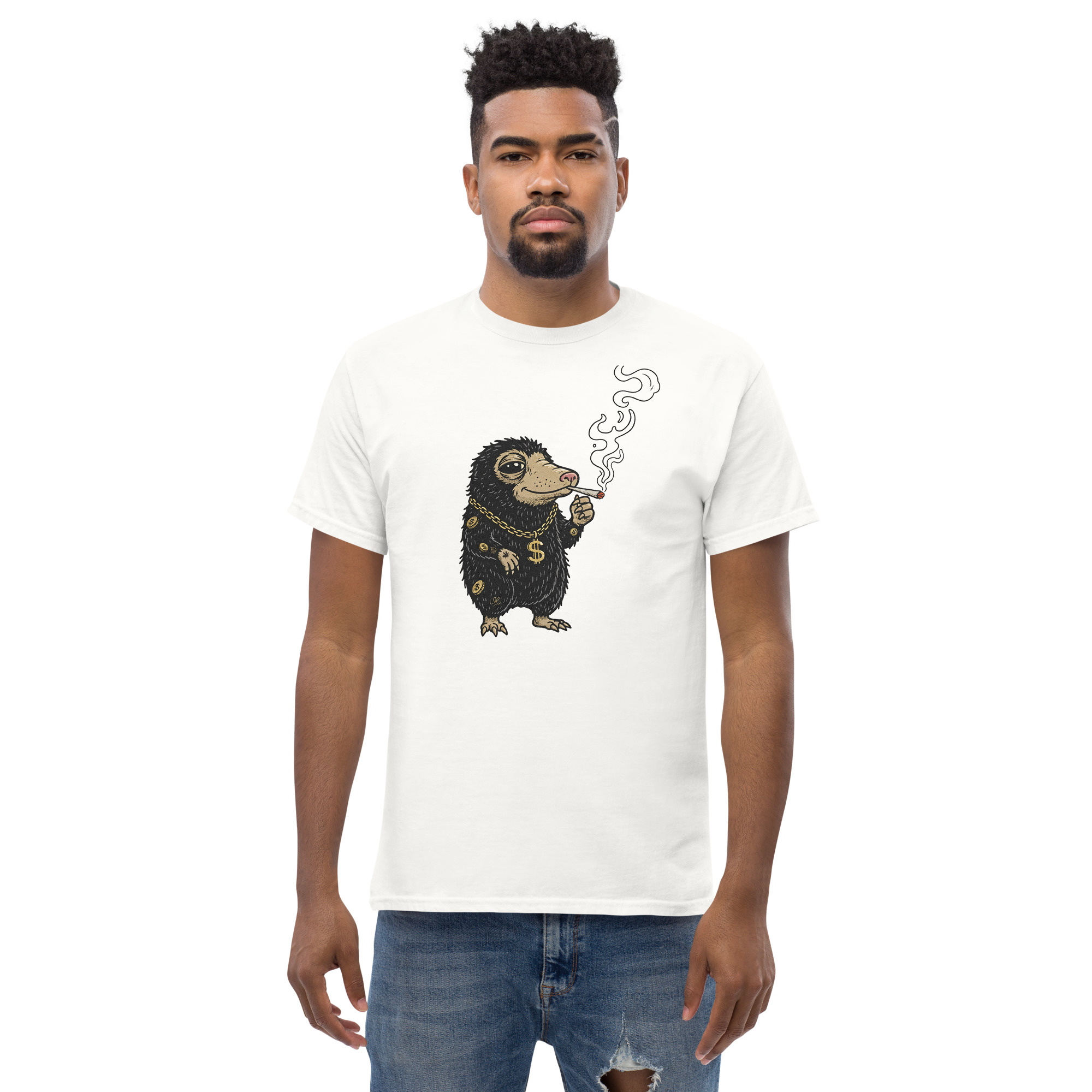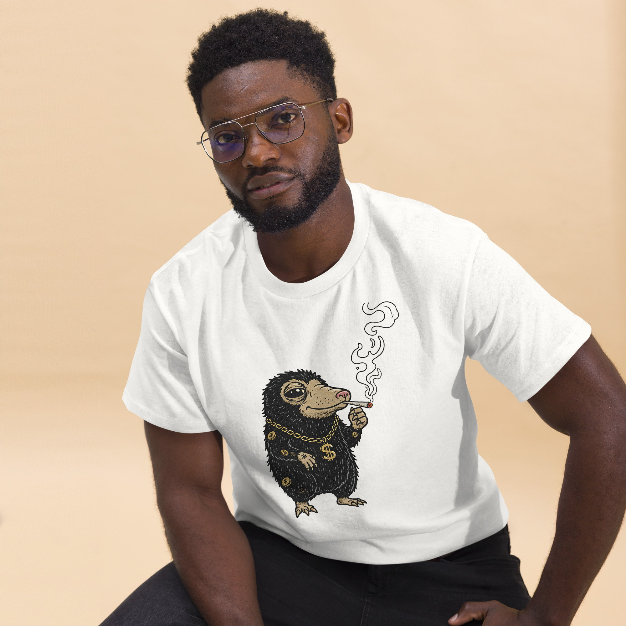 Shiny-loving troublemaker in vintage Chicano flash style. Gold on the brain, smoke in the air, cheeky grin for days. Clean print that reads fast. Works solo with denim or under a jacket. Limited drop so you will not twin with the whole high street.